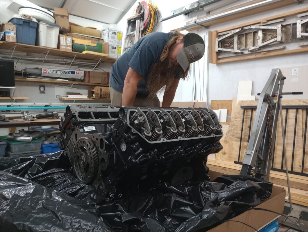 Now it was time to start over. The truck is a part of our home, so we would strive to make it out of the unfortunate situation much better than we went into it. After weeks of indecision and hours of research, we decided to go with a Kill Devil Diesel engine, built on our original block. We took on the strip-down mechanical work ourselves, leaving the long block machining to the pros. With their outstanding reputation, we chose to drive our block all the way to Kill Devil Hills, North Carolina so that they could begin the rebuild. After a few months of patiently waiting, the motor finally arrived along with a blueprint sheet and quality control reports. While it technically may be considered a “rebuild,” everything but the chunk of metal that is the long block is essentially brand new. We spent a weekend piecing everything back together, while contemplating the next move, which would be a 4R100 transmission upgrade.