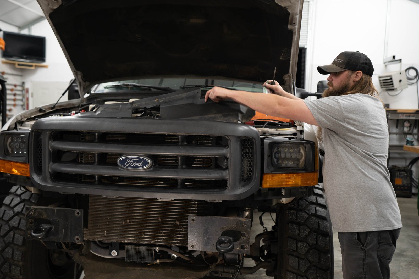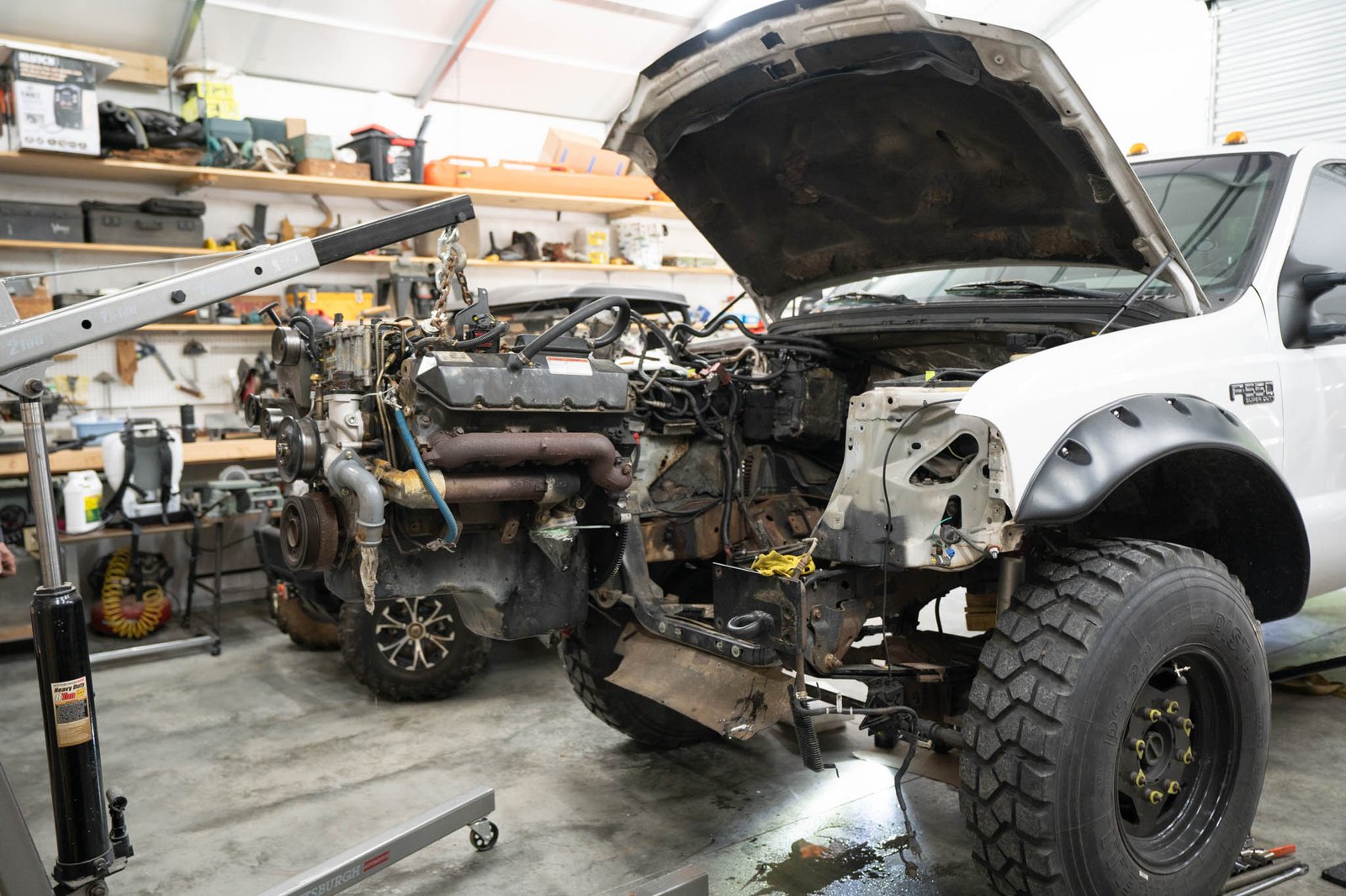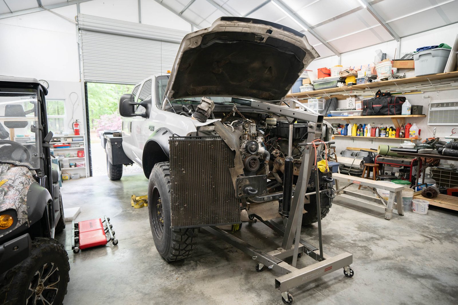 Now it was time to start over. The truck is a part of our home, so we would strive to make it out of the unfortunate situation much better than we went into it. After weeks of indecision and hours of research, we decided to go with a Kill Devil Diesel engine, built on our original block. We took on the strip-down mechanical work ourselves, leaving the long block machining to the pros. With their outstanding reputation, we chose to drive our block all the way to Kill Devil Hills, North Carolina so that they could begin the rebuild. After a few months of patiently waiting, the motor finally arrived along with a blueprint sheet and quality control reports. While it technically may be considered a “rebuild,” everything but the chunk of metal that is the long block is essentially brand new. We spent a weekend piecing everything back together, while contemplating the next move, which would be a 4R100 transmission upgrade.