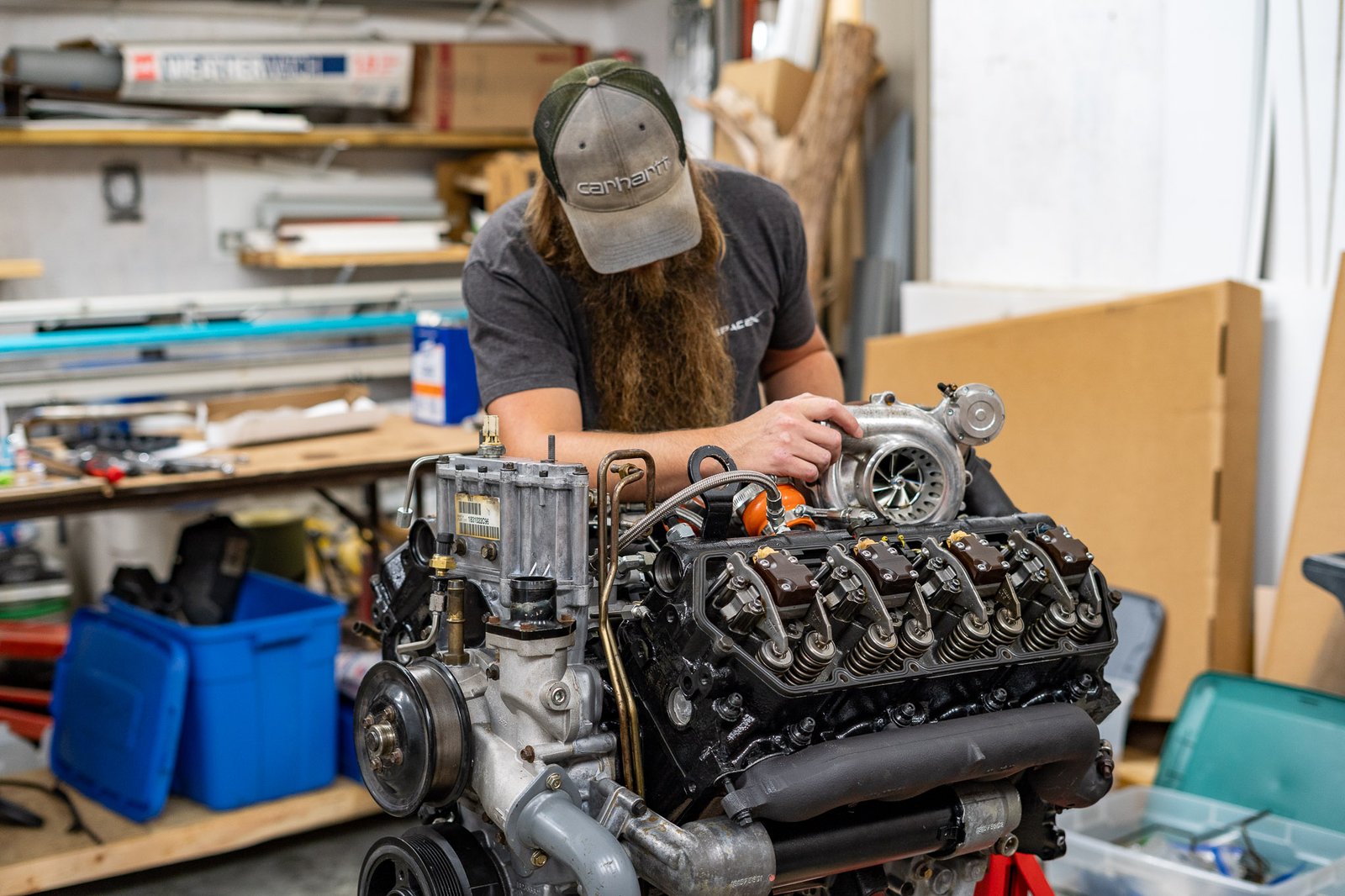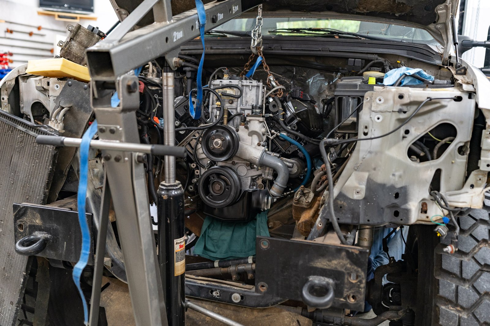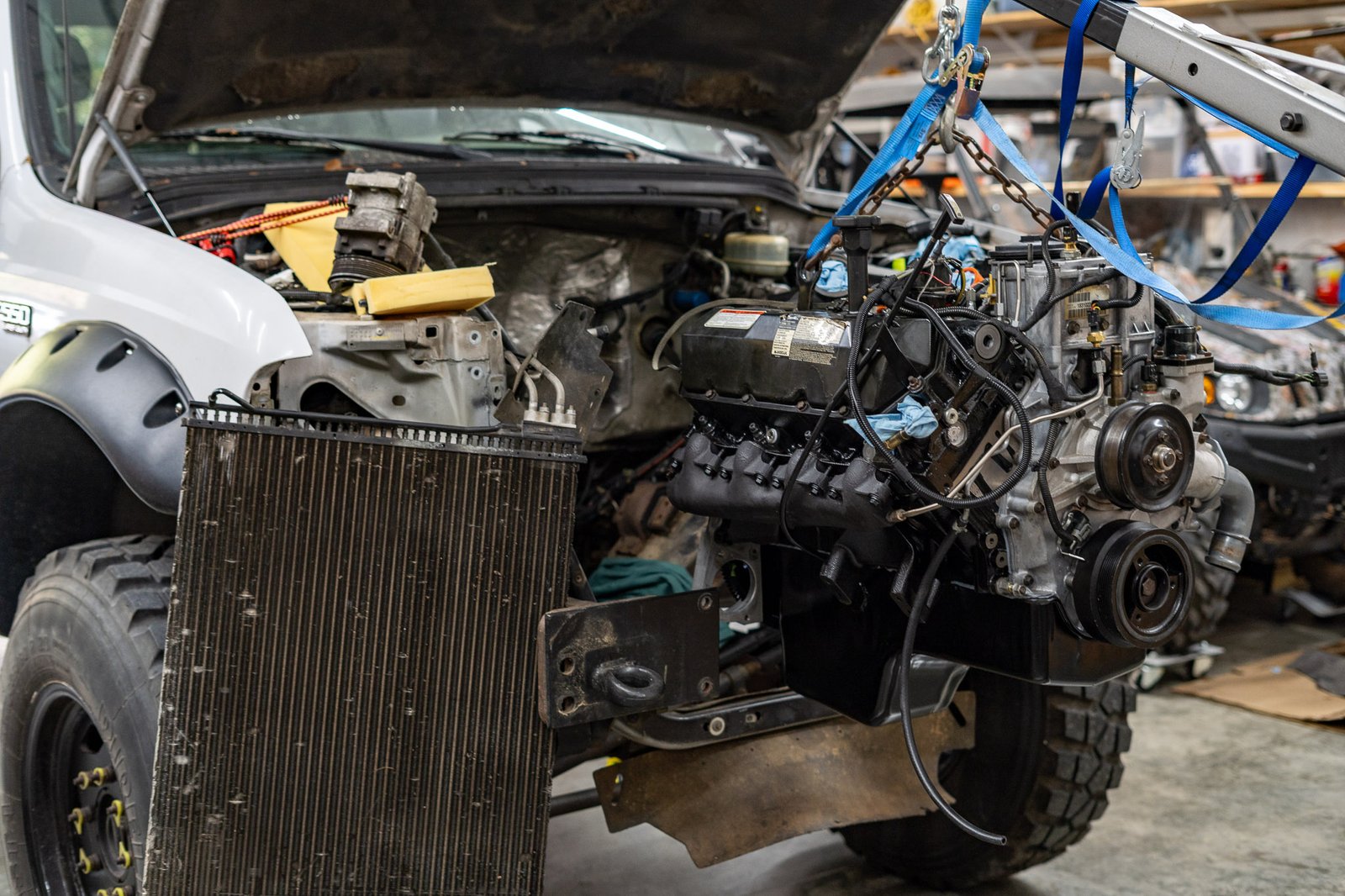 Now it was time to start over. The truck is a part of our home, so we would strive to make it out of the unfortunate situation much better than we went into it. After weeks of indecision and hours of research, we decided to go with a Kill Devil Diesel engine, built on our original block. We took on the strip-down mechanical work ourselves, leaving the long block machining to the pros. With their outstanding reputation, we chose to drive our block all the way to Kill Devil Hills, North Carolina so that they could begin the rebuild. After a few months of patiently waiting, the motor finally arrived along with a blueprint sheet and quality control reports. While it technically may be considered a “rebuild,” everything but the chunk of metal that is the long block is essentially brand new. We spent a weekend piecing everything back together, while contemplating the next move, which would be a 4R100 transmission upgrade.