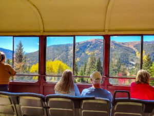 We had just enough time to refuel anything we needed to refuel, top off the water tank again at the RV resort, and dump our trash. The water was slow to fill, but we managed to make it to the Leadville Train Depot about 15 minutes before departure. The tickets were $65 a piece or $130 for the two of us in general admission seating. The train also had open air seating and some other options available. We stopped at the first 2 seats we came to, because that train was already packed full. Unfortunately, we chose the wrong side of the train to see the best views, but we were able to stand comfortably most of the ride to be turned toward downhill, where the most picturesque sites were to be seen. I’d say the colors in the area were close to peak and the weather was perfectly warm.