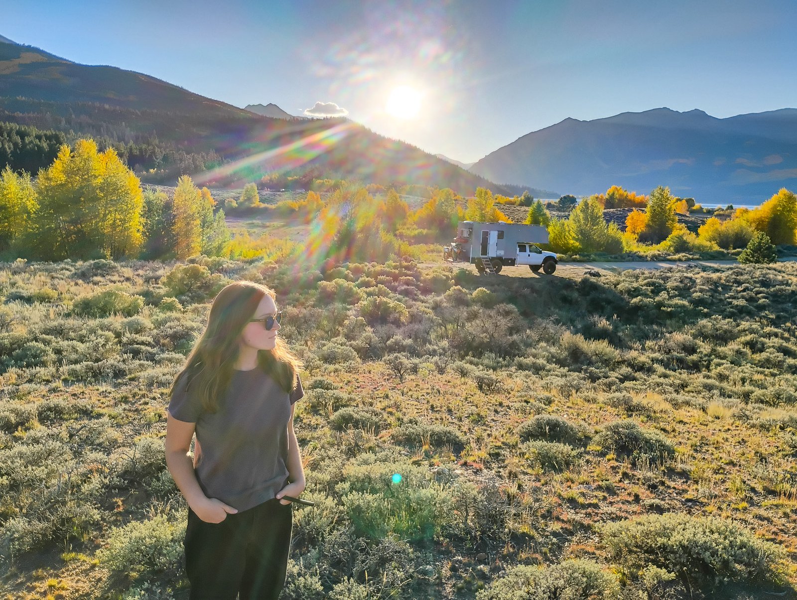 Since it was getting later in the day, after the ride we took a look at Campendium and decided to stay at Twin Lakes at the base of Mount Elbert. (south of Leadville) The dispersed area was quite spacious with plenty of room between sites. There were probably 25+ good sites around the lake. We settled in and relaxed for the next couple days. The foliage was really awesome (probably the best yet), and we couldn’t believe how clear the lakes were. Over the weekend we took several walks to the dam and around some trails, soaking in the views with plenty of photo ops.